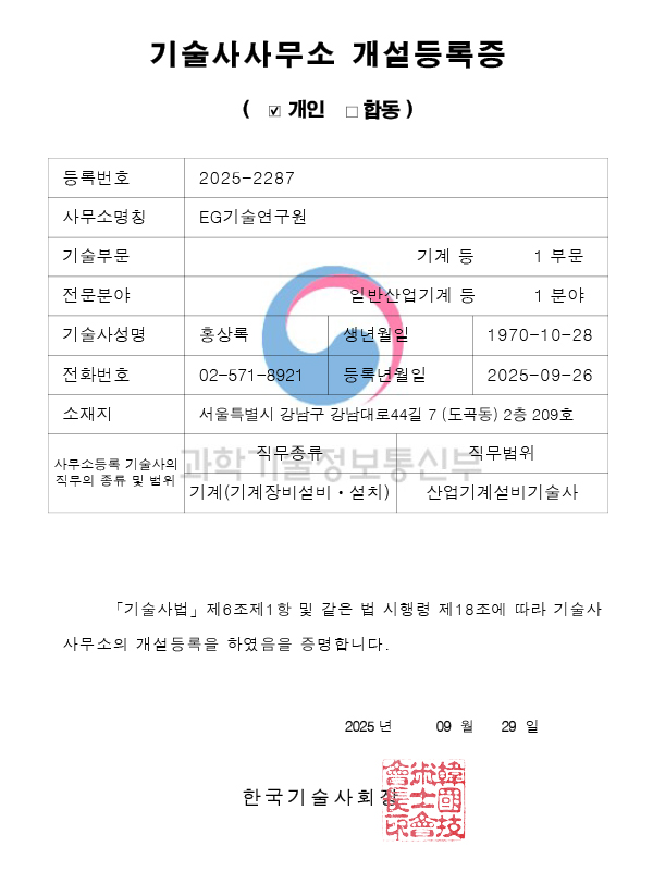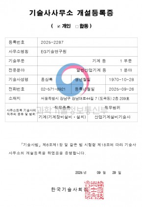 기술사사무소 개설등록증